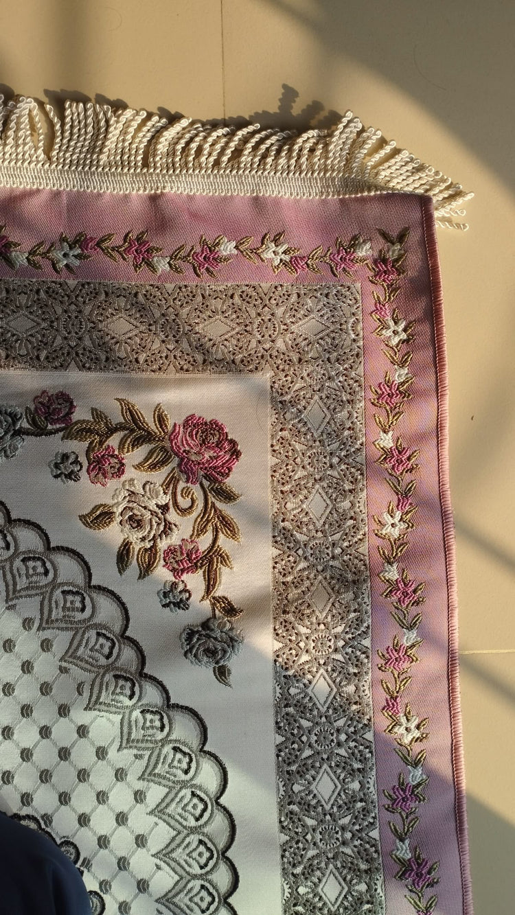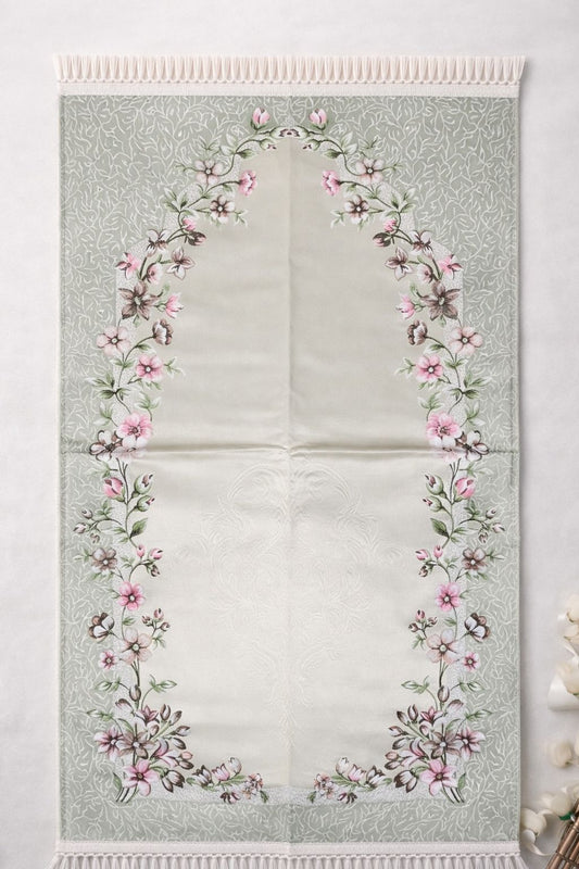 Pearl Grey Floral Janamaz (Prayer Mat) - Made in Turkey