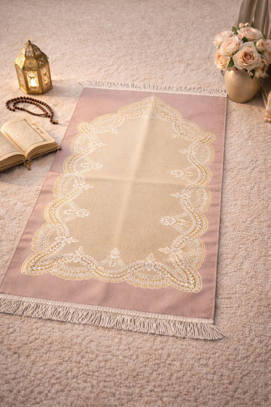 Nude Pink Floral Janamaz (Prayer Mat) - Made in Turkey