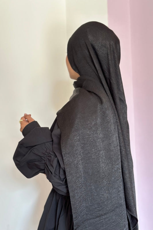 Crinkle Silk - Satin Hijab - Charcoal Grey