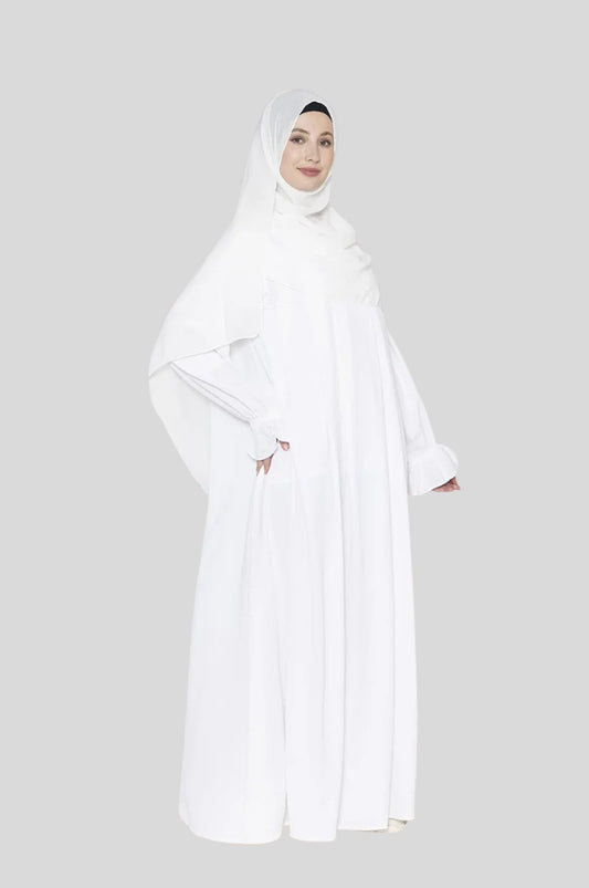 Pleated White Abaya - With Hijab