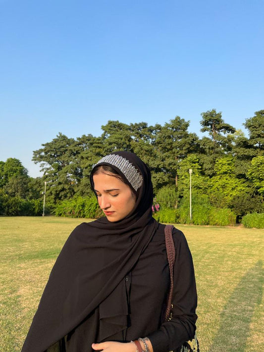 Luxury Handwork Partywear Hijab - Black Sparkle